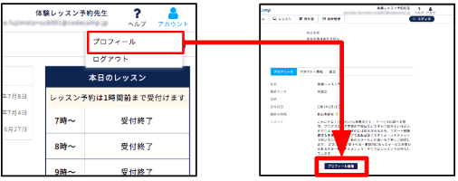 ・ログイン後、ホーム画面右上「アカウント」→「プロフィール」よりプロフィール画面に遷移します。